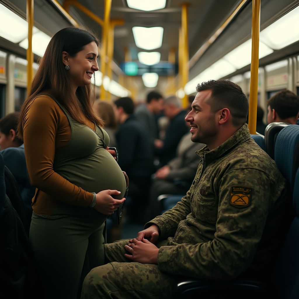 Вагон вдруг стал камерой, в которой все наблюдали за её каждым вдохом; дрожь прошла по спине, и время замедлило шаги. Солдат посмотрел на неё прямо, и в его взгляде была история, которую она ещё не знала, но чувствовала всем телом. Люди шептали, кто-то доставал телефон, кто-то отводил глаза; напряжение росло до предела. «Продолжение на сайте: читайте, чтобы узнать, что произошло дальше и почему этот взгляд изменил всё», — приглушённо прошептал кто-то рядом, и вагон словно замер, ожидая решения.