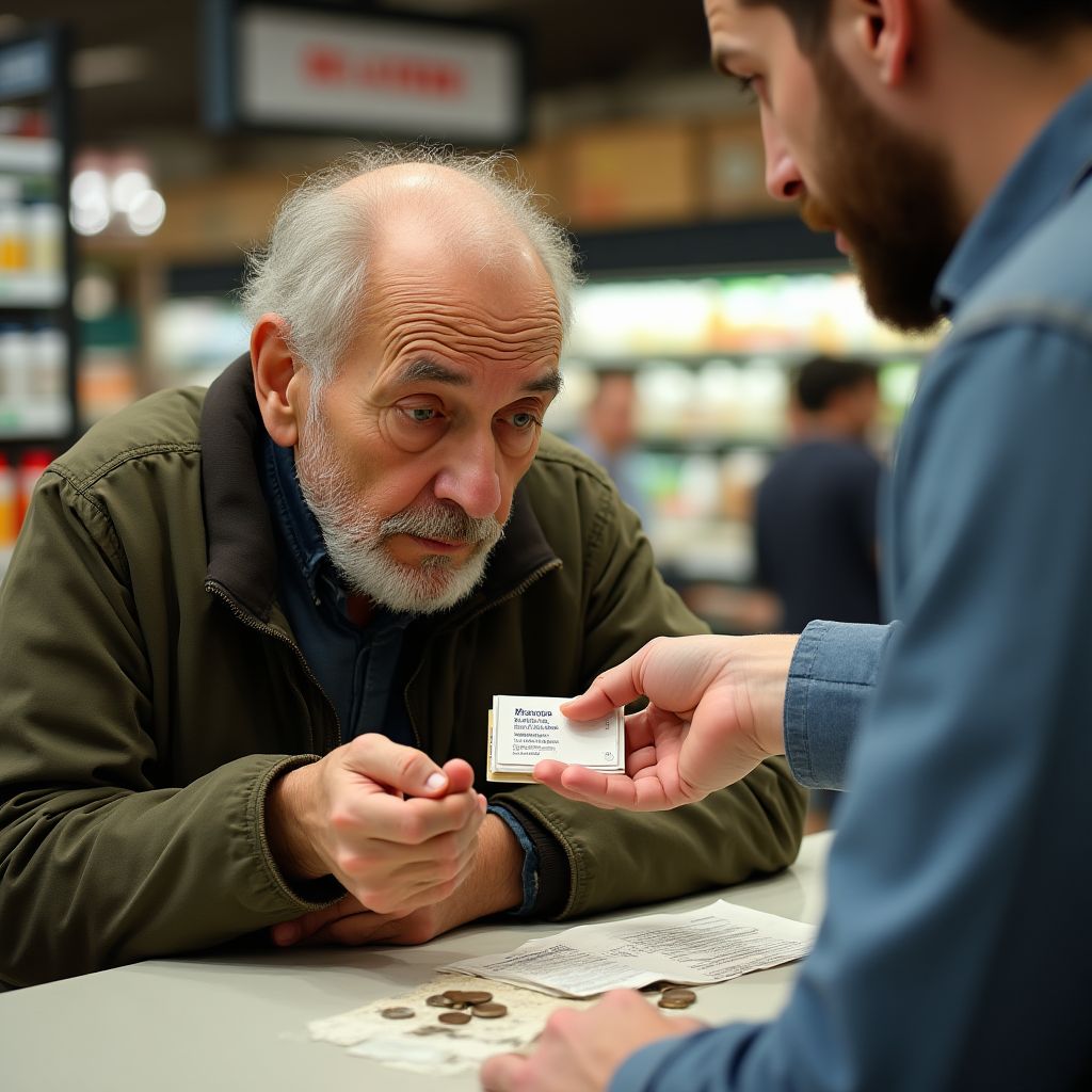 На кассе у старика не хватило денег — визитка таила шокирующую правду, и всё замерло