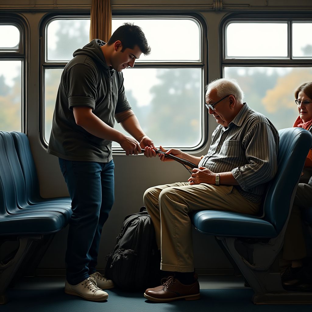 «Что он делает?» — шепнул кто-то рядом. «Он что, совсем?» — пробормотал мужчина в кепке. «Не трогайте старика!» — воскликнула молодая женщина. «Он отдал ей свою единственную опору», — сказал кто-то ещё, и телефон на соседнем сиденье вдруг включил камеру, фиксируя каждый дрожащий жест. Люди смотрели по-разному: удивление, подозрение, осуждение и какая-то редкая благодарность.