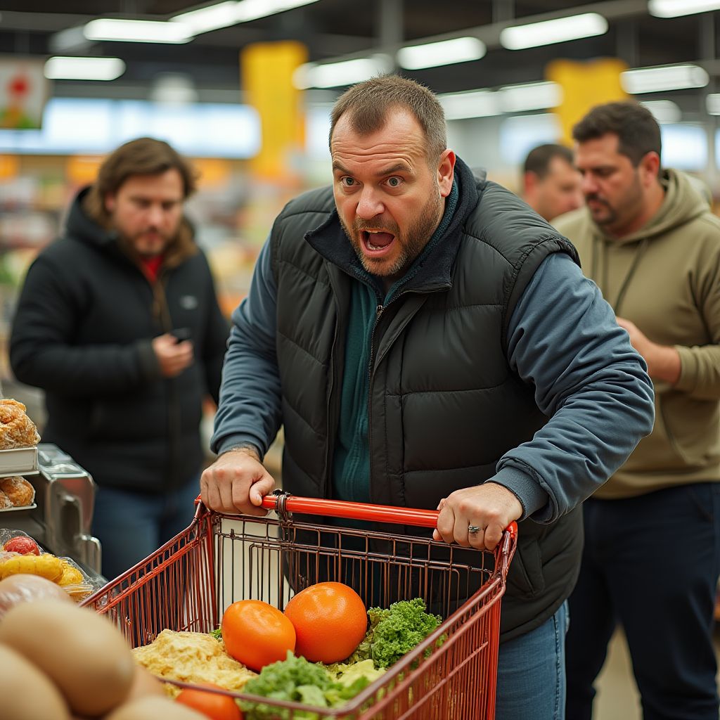 Он стоял на пятой позиции у кассы, согнувшись в тёмной куртке, с глазами цвета уставшего синего неба. Ростом он был среднего, плечи уже не прямые, но выпрямленные от привычки держать ответ перед судьбой; лицо с редкой щетиной и морщинами, как дорожки на старой карте. В руках у него был жмут бумаг, который он прятал под курткой, словно это было единственное, что осталось от жизни. Его одежда пахла старыми воспоминаниями и дешевым табаком, а ботинки шептали о долгих дорогах — маленькие маркеры бедности, которую все вокруг узнавали по взгляду и по тому, как люди шагали в обход.
