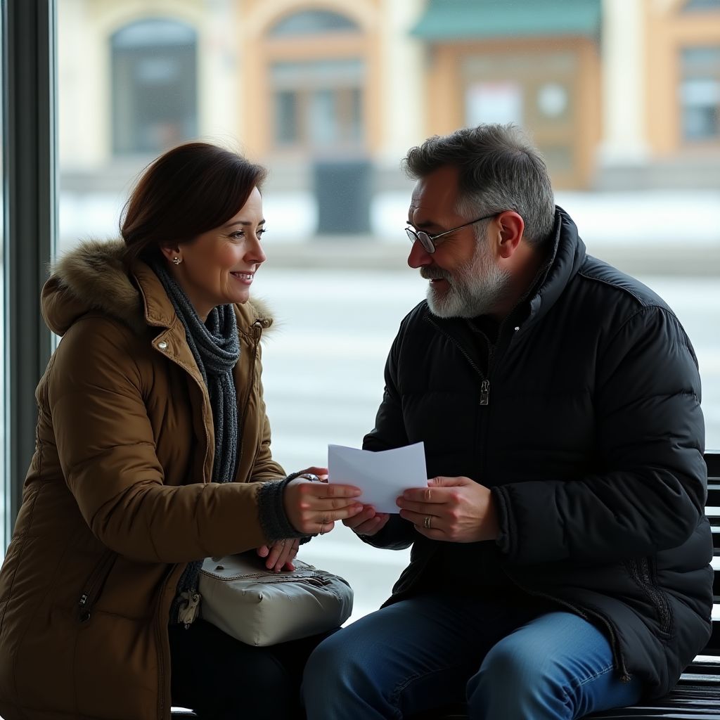 В финальной сцене на скамейке той самой остановки, где всё началось, женщина и её спаситель встретились. В их взглядах читалось глубокое понимание и благодарность — ведь именно через этот конверт, забытый на ветру, они нашли друг друга и силы изменить жизнь.
