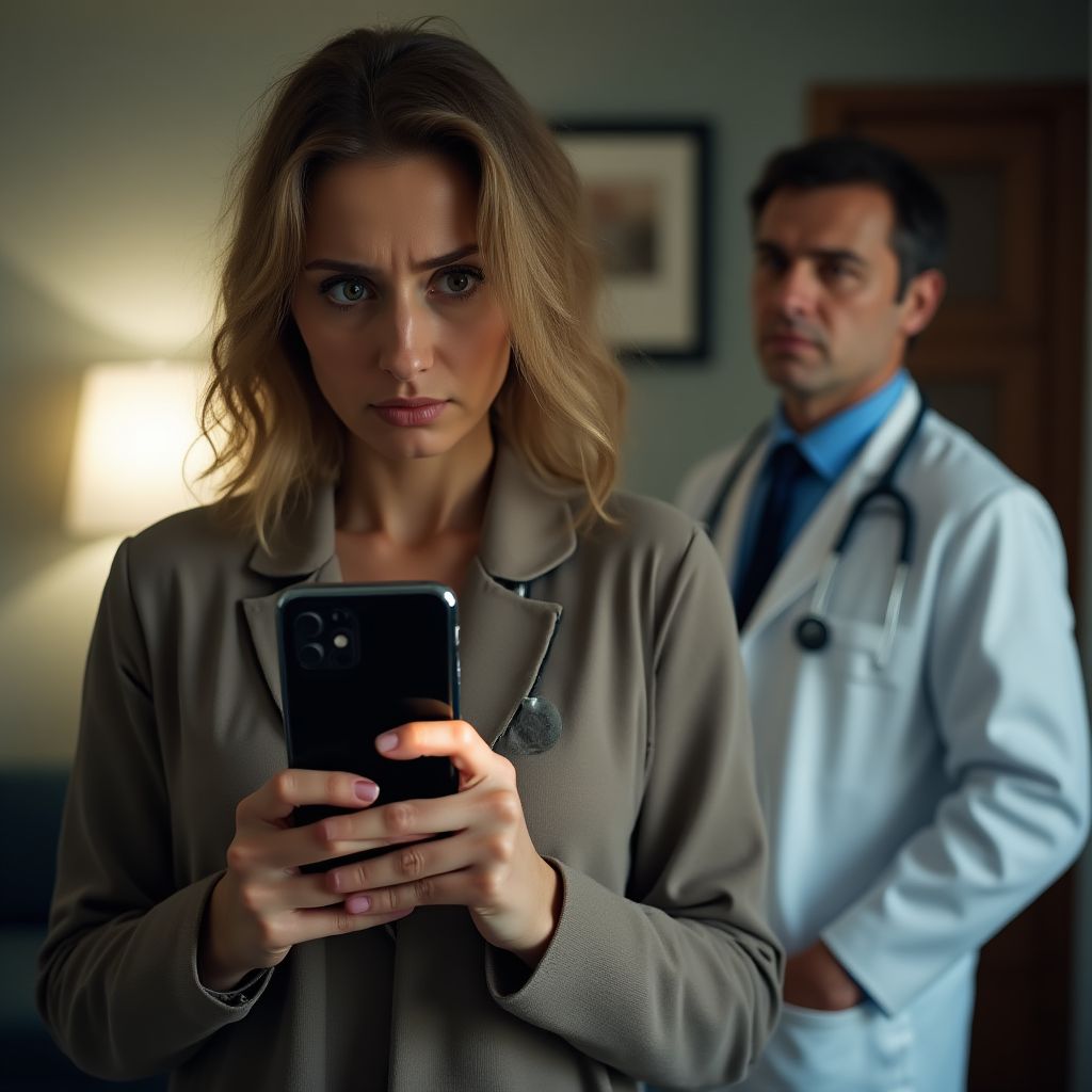 В голове женщины крутилась одна мысль: «Почему я не пришла тогда? Почему пропустила приём? Мало ли дел, мало ли бед… Но теперь всё может быть слишком поздно». Каждый раз, когда телефон звонил, сердце било волнами — страх, надежда и сомнения перемешивались в неразрешимом танце. Она знала, что от этого звонка многое зависит, но тяжесть прошлого тянула к молчанию и страху. На её губах играла тень сомнения, словно ночное небо перед грозой.