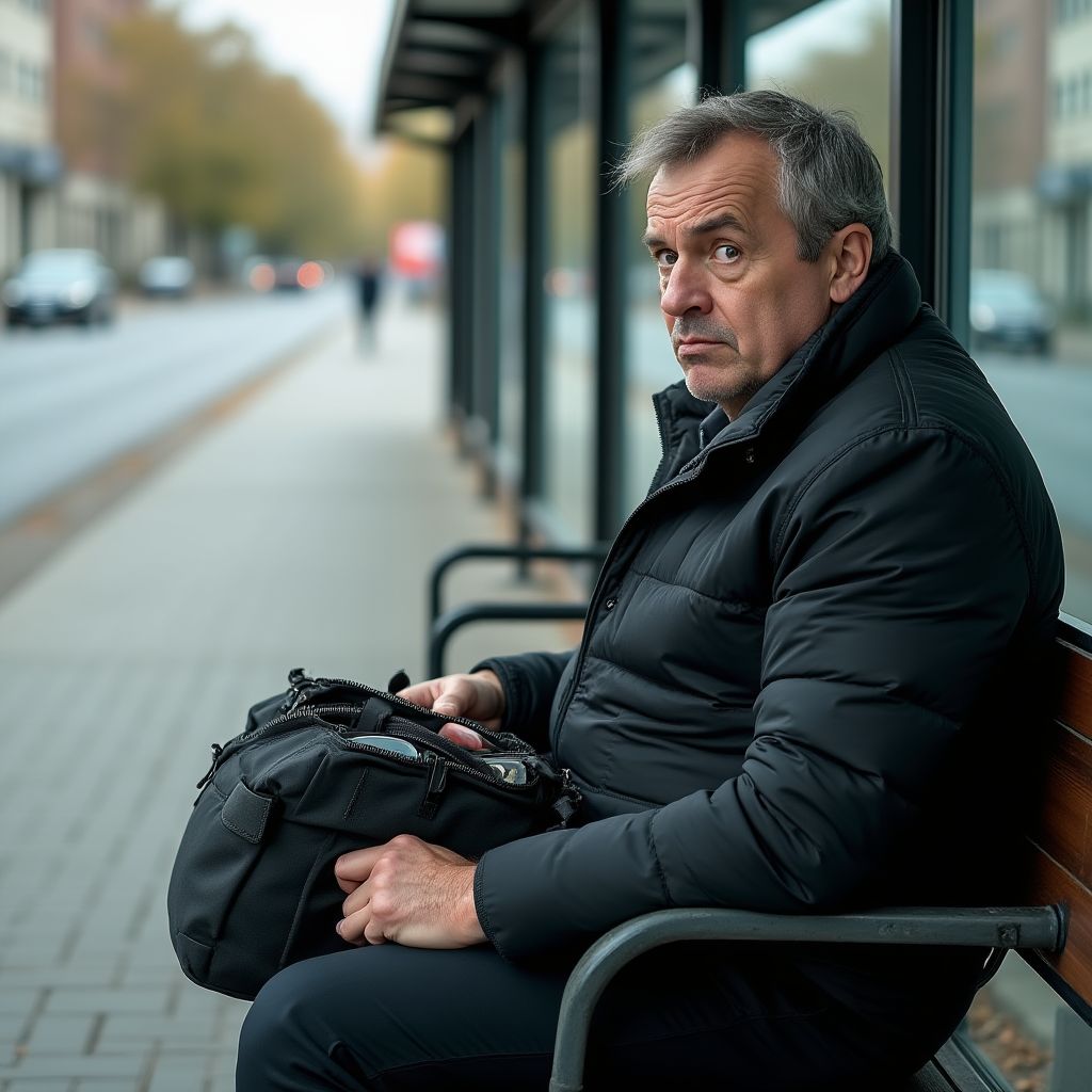 Под холодным зимним небом, озарённым бледным светом уличных фонарей, остановка казалась островком отчаяния посреди шумного города. Воздух был наполнен резким запахом мокрого асфальта и копоти от проезжающих автобусов. Мороз колол кожу, заставляя прохожих скорей прятаться в своих тёплых одеждах. Ветхий деревянный павильон с облупившейся краской скрипел от нехватки ветра, а тишину нарушал лишь приглушённый гул машин и редкие взгляды замёрзших прохожих. Время казалось застыла в этот поздний вечер, когда редкие светящиеся окна магазинов манили теплом.