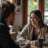 Она стояла неподвижно у выхода на посадку, сжимая в руках старую потрёпанную сумку. Высокая, стройная женщина с каштановыми волосами, слегка растрёпанными от ветра, и глазами цвета дождливого неба — глубоко задумчивыми и усталыми. Её одежда была простая: поношенный плащ и скромные ботинки, которые выдавали того, кто не привык к роскоши. Несмотря на это, она держалась с достоинством, скрывая под сердечной усталостью тихую силу. В её взгляде читалась тревога, смешанная с решимостью. Она ждала свой рейс, который должен был уже давно отправиться — но ей было всё равно.