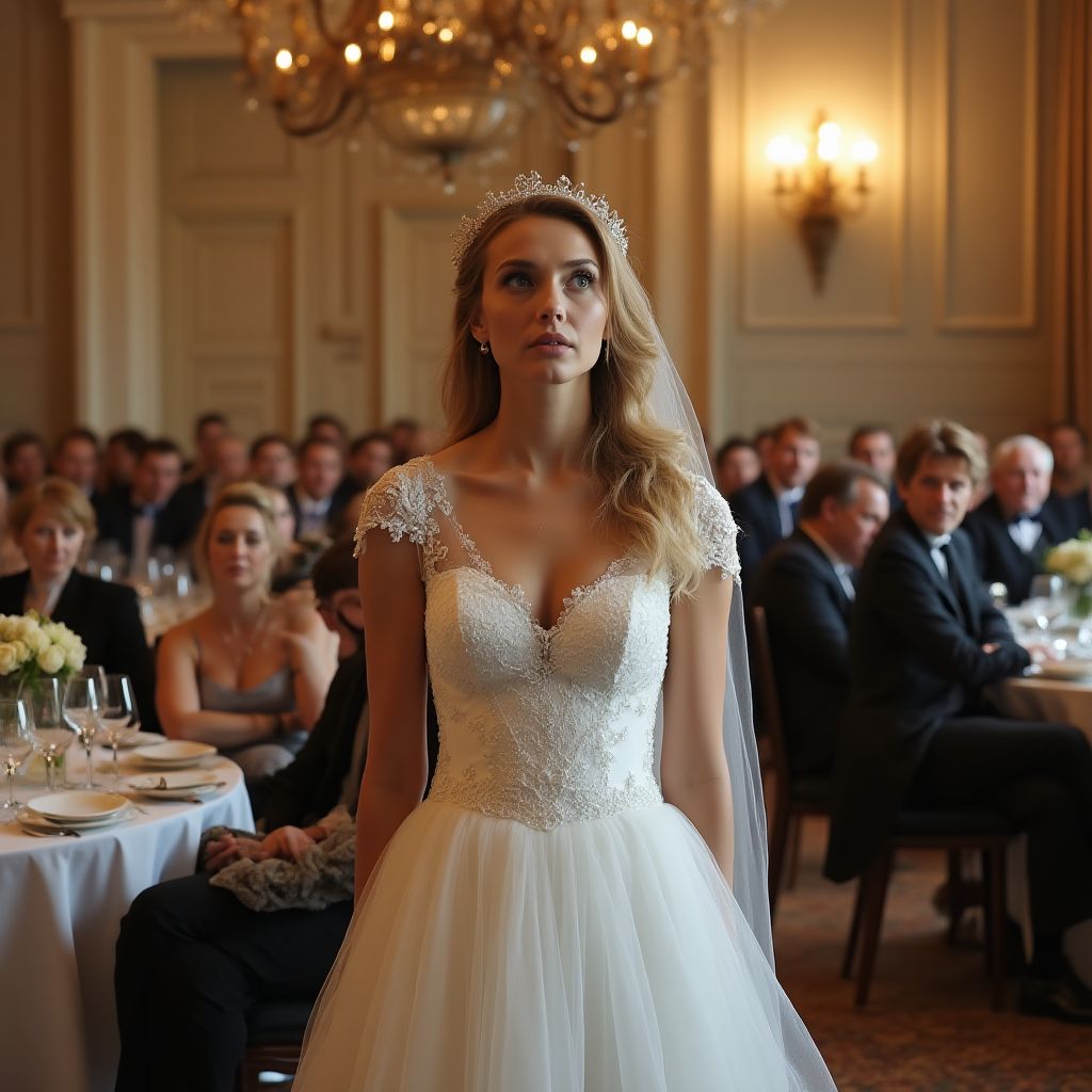 Её сердце бешено стучало, когда взгляд скользнул по гостям: все они смотрели с любопытством и сдержанной улыбкой, наслаждаясь праздником, который казался ей чуждым. В голове мелькали воспоминания — о трудных годах, о родителях, которые так и не смогли посетить эту свадьбу, и о том, как чудесно было казаться частью чего-то большого. Но была и усталость: могла ли она действительно принадлежать сюда, в этот сверкающий зал, полный богатства и лицемерия?