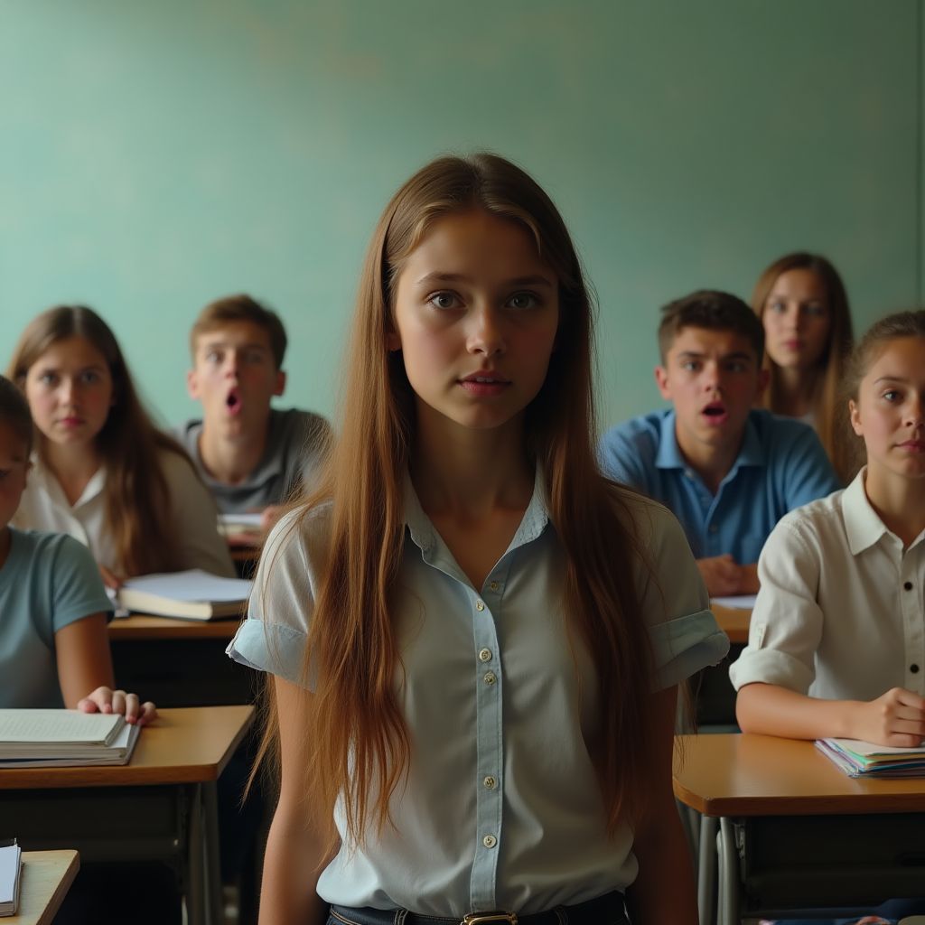 Анна сделала глубокий вдох, чувствуя, как внутри всё переворачивается. Время замедлилось, каждая секунда вытягивалась, словно старая скрипка на последней ноте. Она знала — этот момент всё изменит. Сердце колотилось так громко, что казалось, его слышат все. Она поднялась с места, направляясь к своим сверстникам.