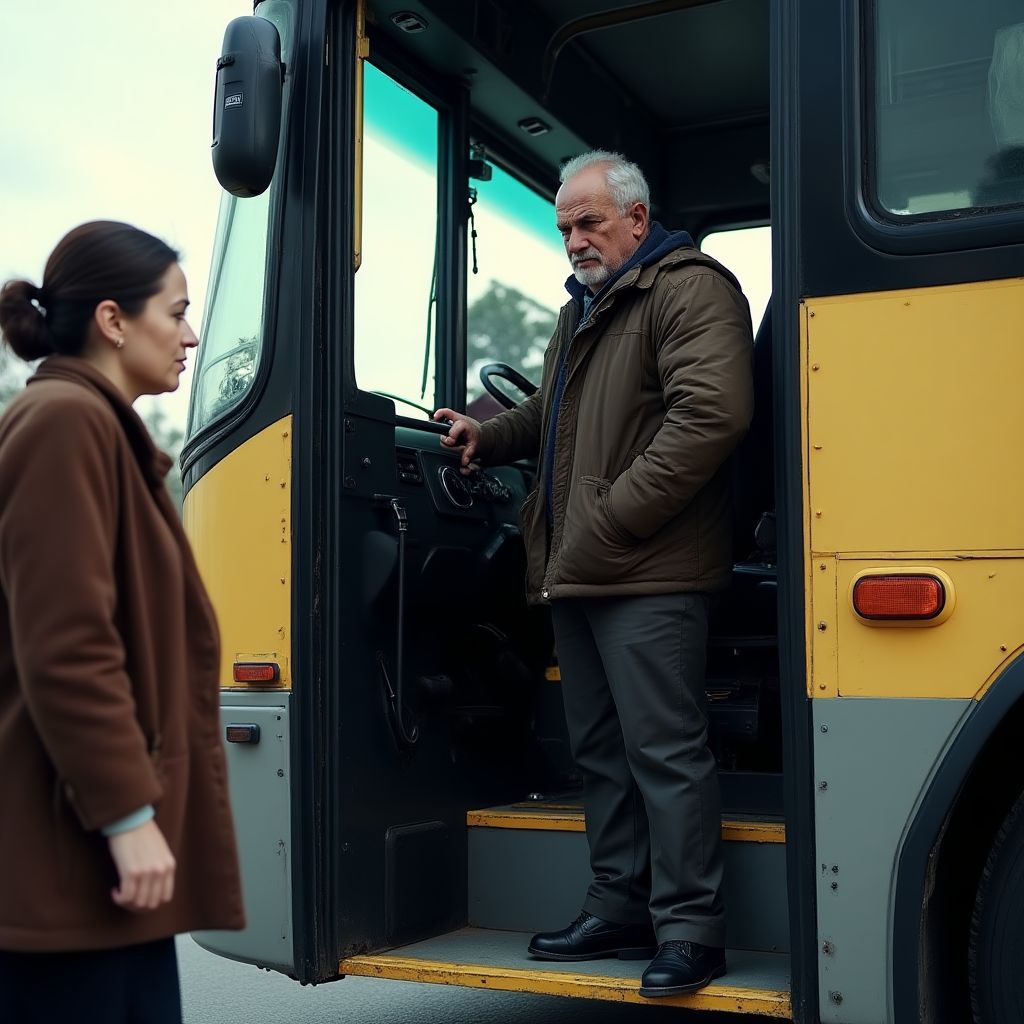 В центре внимания стоял Василий — невысокий мужчина лет сорока с усталыми глазами цвета мокрого асфальта. Его тщательно отглаженная серая куртка и чистые потёртые джинсы резко контрастировали с облупившимися стенами ожидалки и залатанными кроссовками. Его осанка была прямой, но лицо казалось тяжёлым от пережитой жизненной усталости. Руки с грубой кожей, натруженной многолетней работой водителем. Василий не спешил; терпеливо проверял маршрут и билеты, его спокойствие было островком стабильности на этом безмолвном берегу городской суеты. Взгляд его искал что-то большее, чем просто остановка — может, надежду или простую человеческую благодарность.
