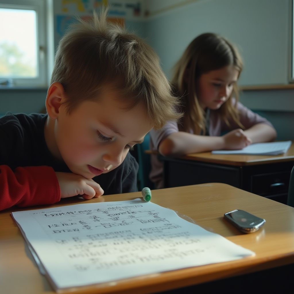 Когда дверь в класс резко хлопнула, пронзительный гул ветра заполнил пространство, заставляя страницы учебников подрагивать. Наталья Сергеевна сжала бумажку с заметками в кулаке и сделала шаг к мальчику. Взгляд всех учеников сосредоточился на ней, в воздухе повисло напряжённое молчание, прерываемое лишь тихим покапыванием дождя за окном. «Подожди, что ты там написал?» — голос учительницы дрожал, но был твердым. Мальчик, не глядя, продолжал беззвучно перебирая пальцами по парте, как будто боялся быть услышанным. «Помоги мне…», — прошептала она, прочитав надпись вслух.