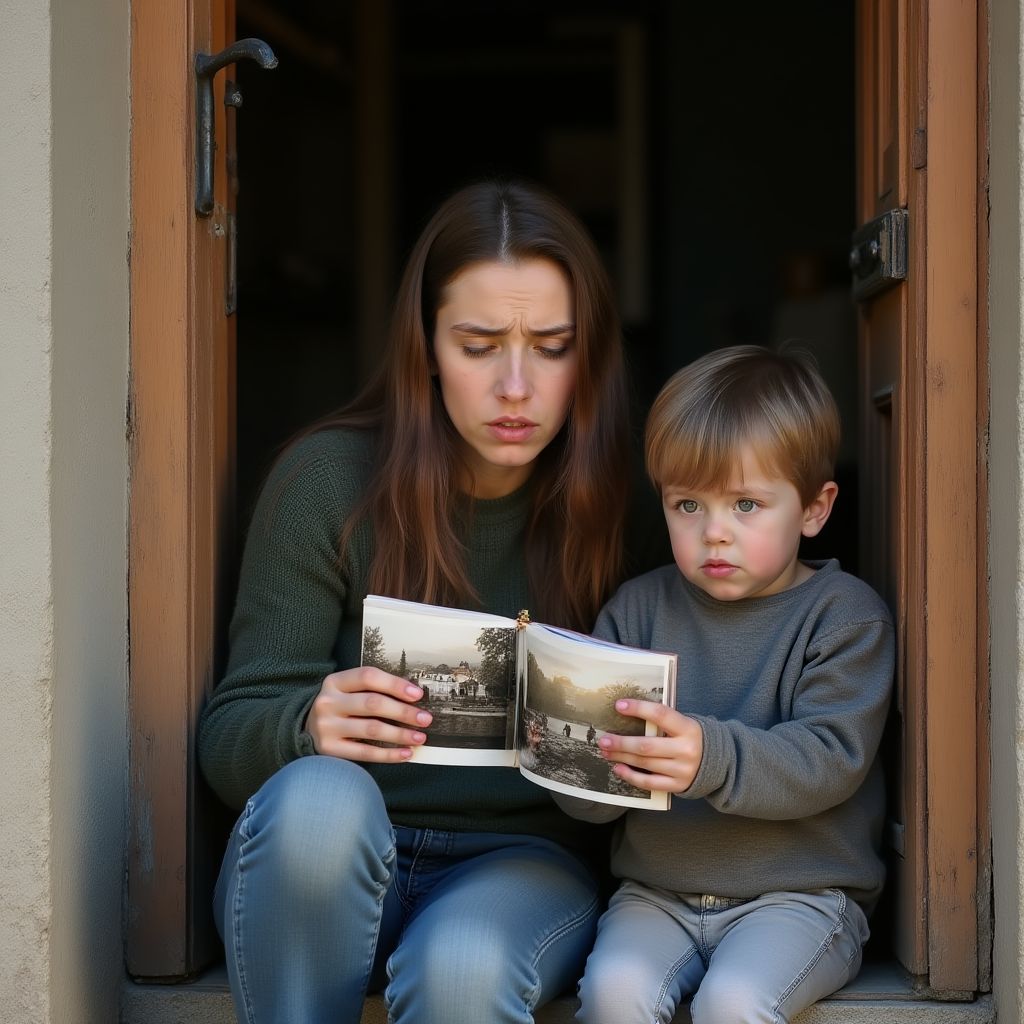 Её руки сжали края старинного фотоальбома, и мир вокруг будто застыл. Все взгляды — от работников приюта до случайных прохожих — устремились на страницы, которые она вот-вот раскроет. Сердце бешено сжималось в груди, дрожь пробегала по спине, а холодный пот выступал на лбу. «Пожалуйста, поймите меня,» — наконец прошептала она, голос дрожал, словно тонкий лед под тяжестью обвала. В комнате повисла тишина, прерываемая только тихим шелестом листающихся страниц.