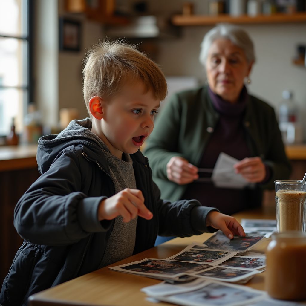Слова ребёнка повисли в воздухе, и мир вокруг словно замер. Женщина медленно опустила фотографию на стол так, чтобы мальчик мог хорошо её видеть. На снимке была маленькая девочка, не старше самого мальчика, с хитрым, но добрым взглядом, который казался знакомым, почти родным. «Это… тоже ты?» — прохрипел мальчик, глаза наполнились слезами, а руки зашатались от волнения. Посетители сдерживали дыхание.