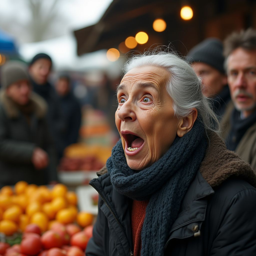 Прохожие переглянулись. Одни пытались скрыть смущение, другие — страх. Рабочий, держа пакет с овощами, остановился, слушая причудливую бабушку. Воздух повис в напряжении — время будто замерло. И в этот момент Хазина обернулась, и всё вокруг словно застыло в ожидании…