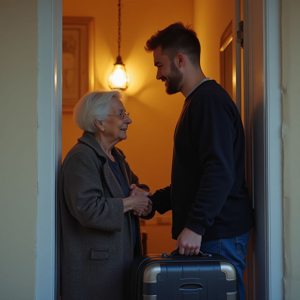 «Кто это может быть так поздно?» — задумалась она, осторожно подходя к двери, глядя через глазок. В дверях стоял мужчина в потертом плаще, с усталыми глазами и чистой сумкой за плечами. «Здравствуйте, бабушка, меня зовут Дмитрий. Я — ваш внук…» — его голос дрожал, и это взволновало Марию Петровну, заставляя сердце биться быстрее.