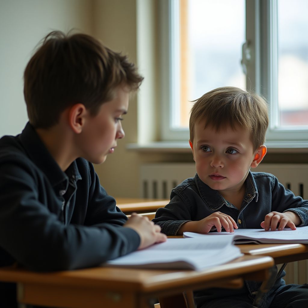 «Это из суда», — наконец вымолвил он, голос звучал тихо, но уверенно. «Мои родители… Они назначены опекунами моего младшего брата и сестры. Мама и папа вышли из тюрьмы, а я не мог о них рассказать». Учитель, сидевший напротив, поднял брови, а ученики переглянулись.