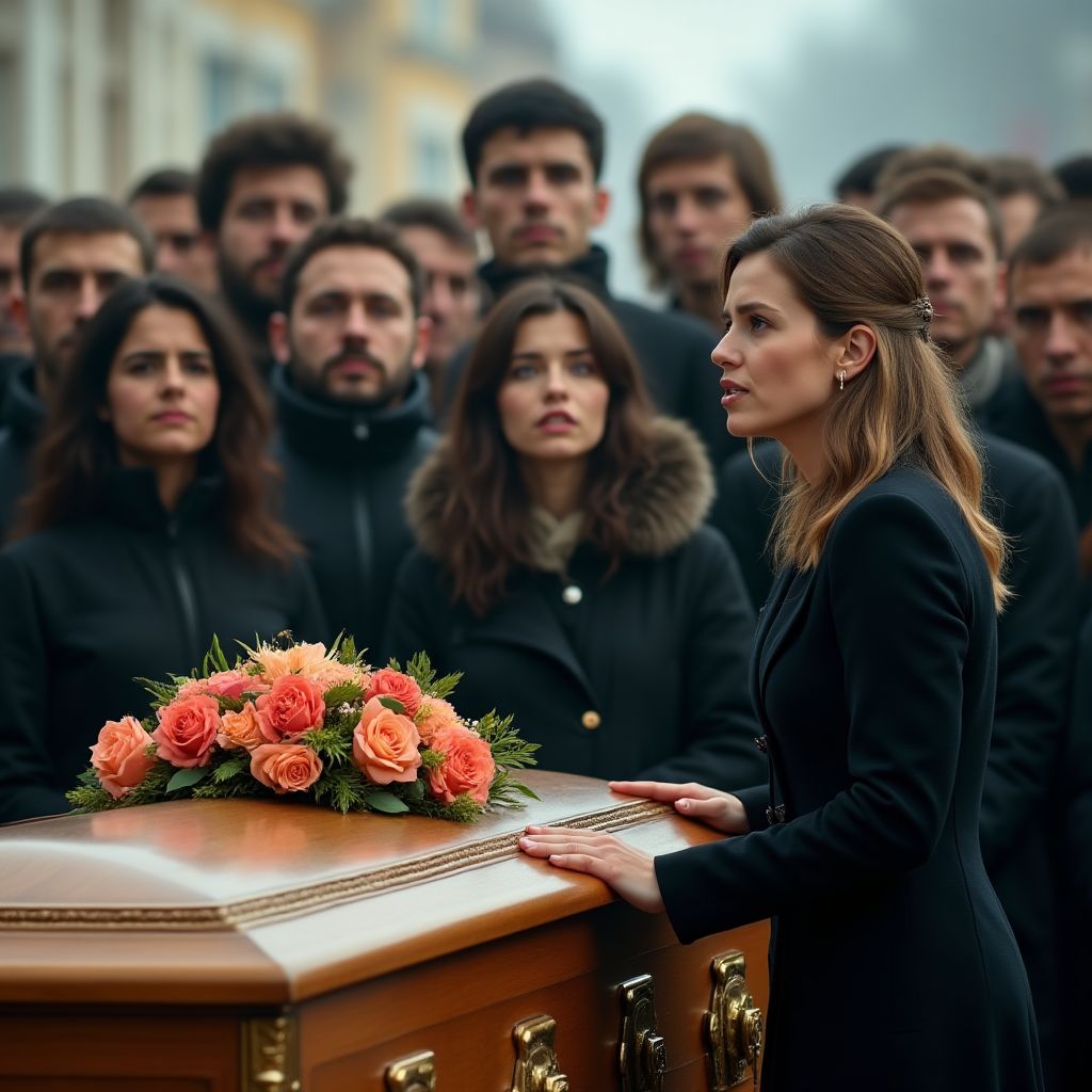 В этот момент женщина сделала глубокий вдох, собираясь с силами. Её рука задрожала, когда она сжала любимое фото покойного, спрятанное в сумке. «Он не тот, кем кажется,» — пронзительно произнесла она, и в комнате повисла гробовая тишина. Все взгляды устремились на неё с жадным ожиданием. Вдруг кто-то прошептал: «Что же произошло?» Сердце билось так громко, что казалось, его услышат все. Женщина сделала шаг вперёд, и её голос стал громче, проникновеннее: «Позвольте мне рассказать правду…»