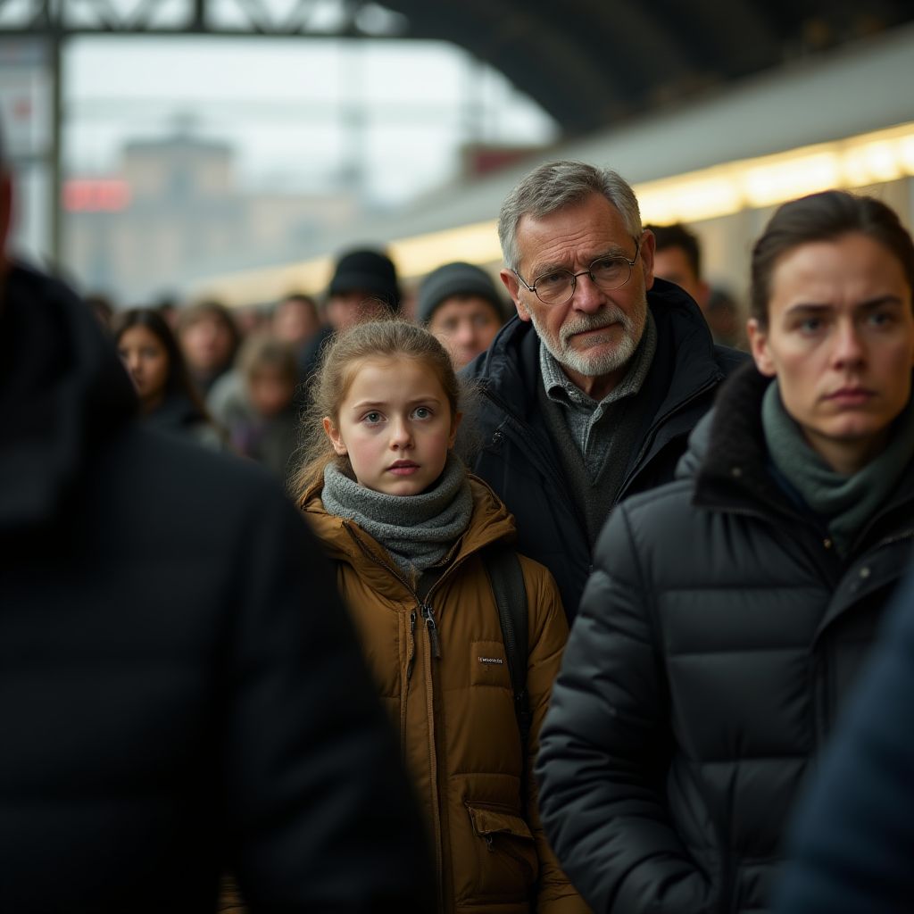 На одной из платформ стояла маленькая девочка лет восьми — короткие тёмные волосы спадали на нос, а на худеньких плечах висела слишком большая для неё ярко-розовая куртка. Глаза, огромные и огромного страха, бегали по толпе, полной чужих лиц и чужих голосов, перемешанных в тревожный шум. Её босоногие ноги дрожали, ноги подрагивали от холода, а губы тихо шептали имя мамы. Девочка выглядела потерянной, словно крохотный плод среди бушующей бури.