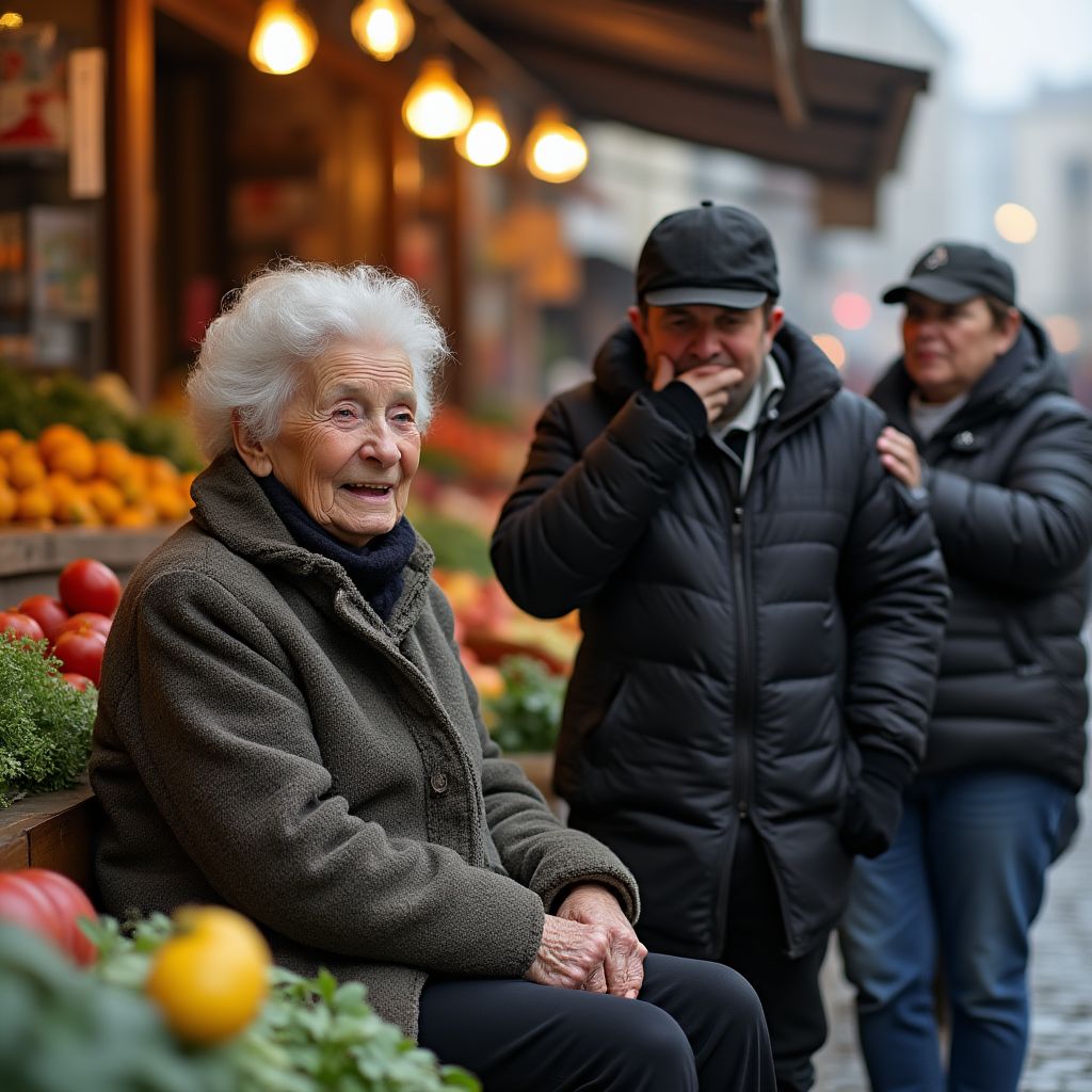 Секунды, которые следовали за её коротким признанием, растянулись до вечности: люди разом приблизились, голоса стали громче, а дождик, казалось, перестал стучать. Продавец, у которого на прилавке лежали помидоры с пятнами земли, застыл. «Ты сказала — сын?» — прошептал он, глаза метнулись к её коленям, где лежал листок с помятой печатью. Его пальцы дрожали, как будто холод пробежал по всему телу. Рядом женщина выдавила: «Покажи документ!» — но старушка медленно прижала бумагу к груди и закрыла глаза, будто собираясь в путь памяти.