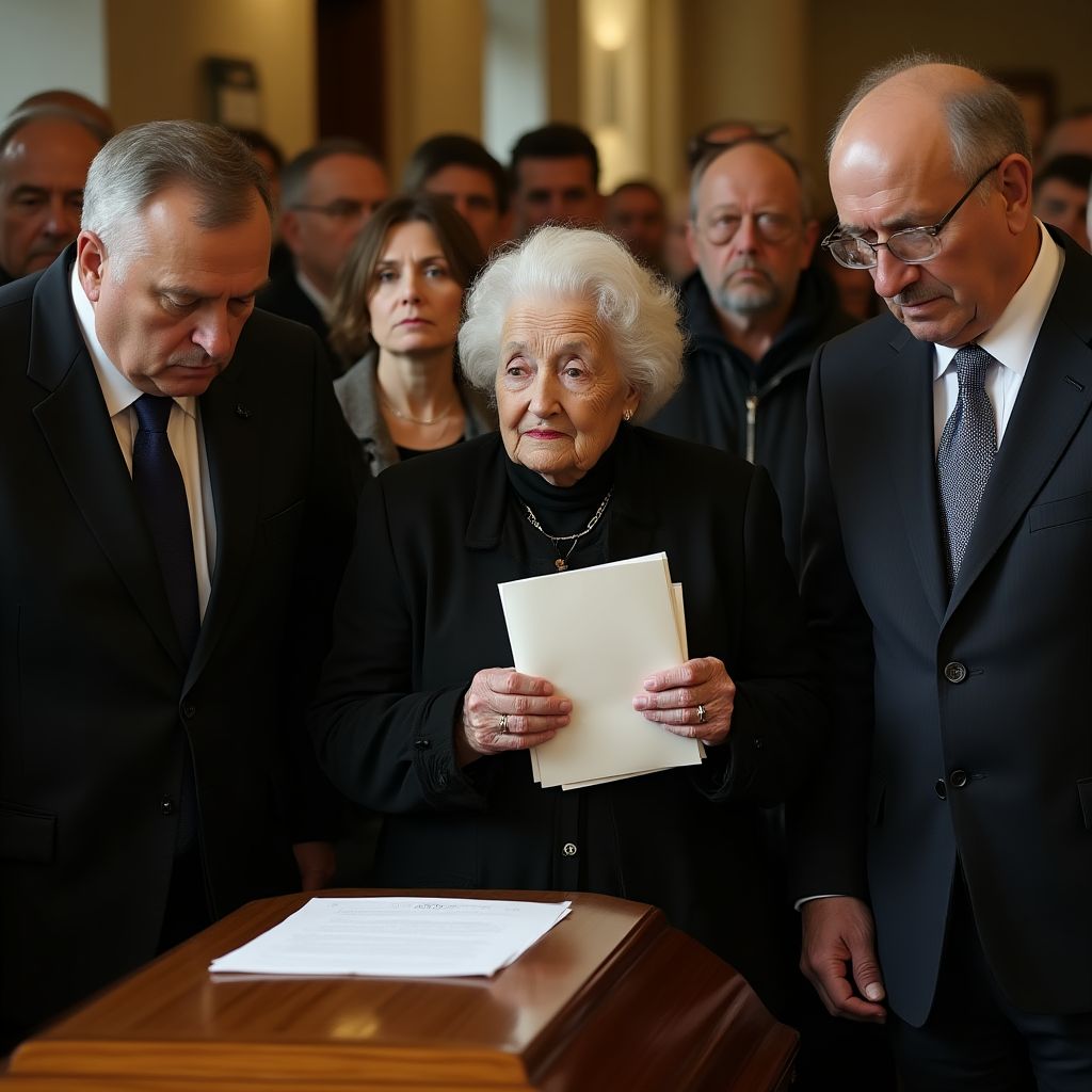 — «Кто знает её фамилию?» — спросил кто-то рядом, сдавленный голос, как будто спрашивали о погоде. — «Похороны простые, без оркестра», — усмехнулась другая, и в голосе прозвучал укор. Он наклонился ближе и заметил склеенный конверт, наполовину застрявший между досок гроба, словно забытая табличка. «Что это за бумажка?» — пробормотал он, пальцы касались бумаги, холодной от утренней сырости. Сердце его екнуло.