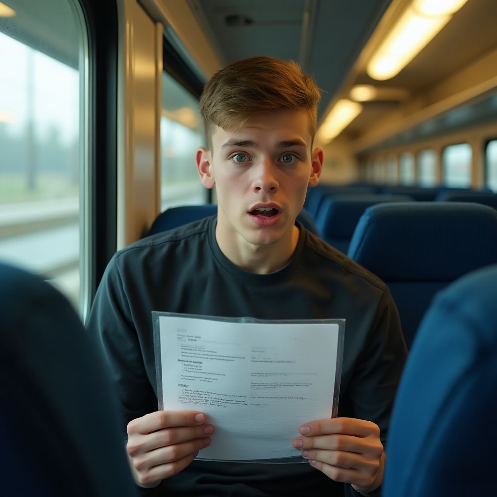 Сердце Максима колотилось так сильно, что казалось, ослепительный свет прожекторов и шум поезда усиливают каждую вибрацию. Взгляд его блуждал по строкам на листе, а голос дрожал: «Это письмо — предупреждение? Но кто бы мог знать обо мне настолько много?» Другие пассажиры начали волноваться, кто-то тихо перешёптывался, заметив его растерянность.
