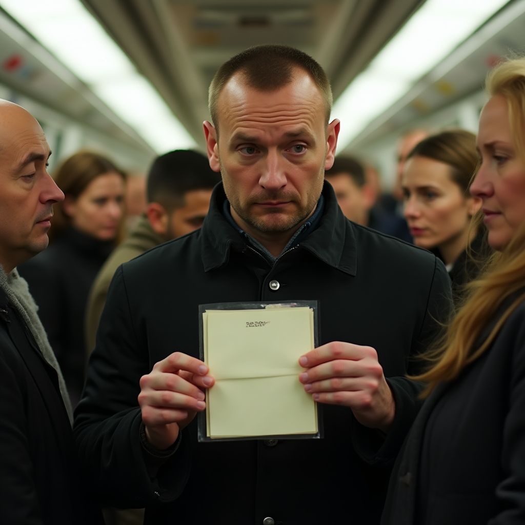 «Что это?» — прошептала женщина рядом, с опаской глядя на мужчину. «Может, последняя жалоба?» — заметил молодой прохожий, с интересом наклонившись ближе. «Или предсмертная записка?» — тихо пробормотал старик, потирая глаза от напряжения. В вагоне стало невозможно дышать от напряжённого молчания, нарушаемого лишь шуршанием бумаги. Их взгляды наполнились одновременно любопытством и страхом.