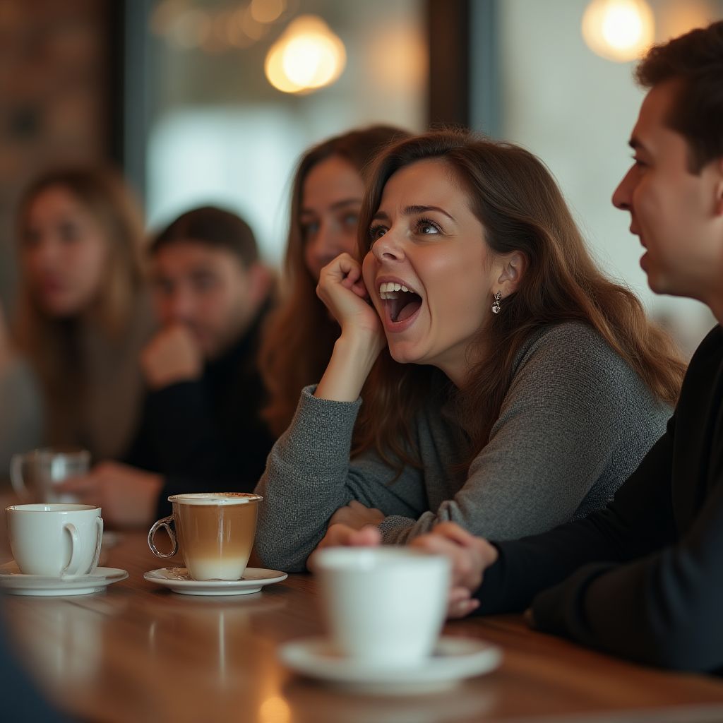 Внезапно раздался резкий, пронзительный крик. Женщина, не в силах больше сдержаться, поднялась и громко закричала. Гости кафе остановились, взгляды устремились к ней. «Что с ней?» — шёпотом спросил молодой мужчина в бархатном пиджаке. «Может, ей нужна помощь?» — осторожно добавила девушка за кассой. «Это просто безумие!» — буркнул мужчина в углу.