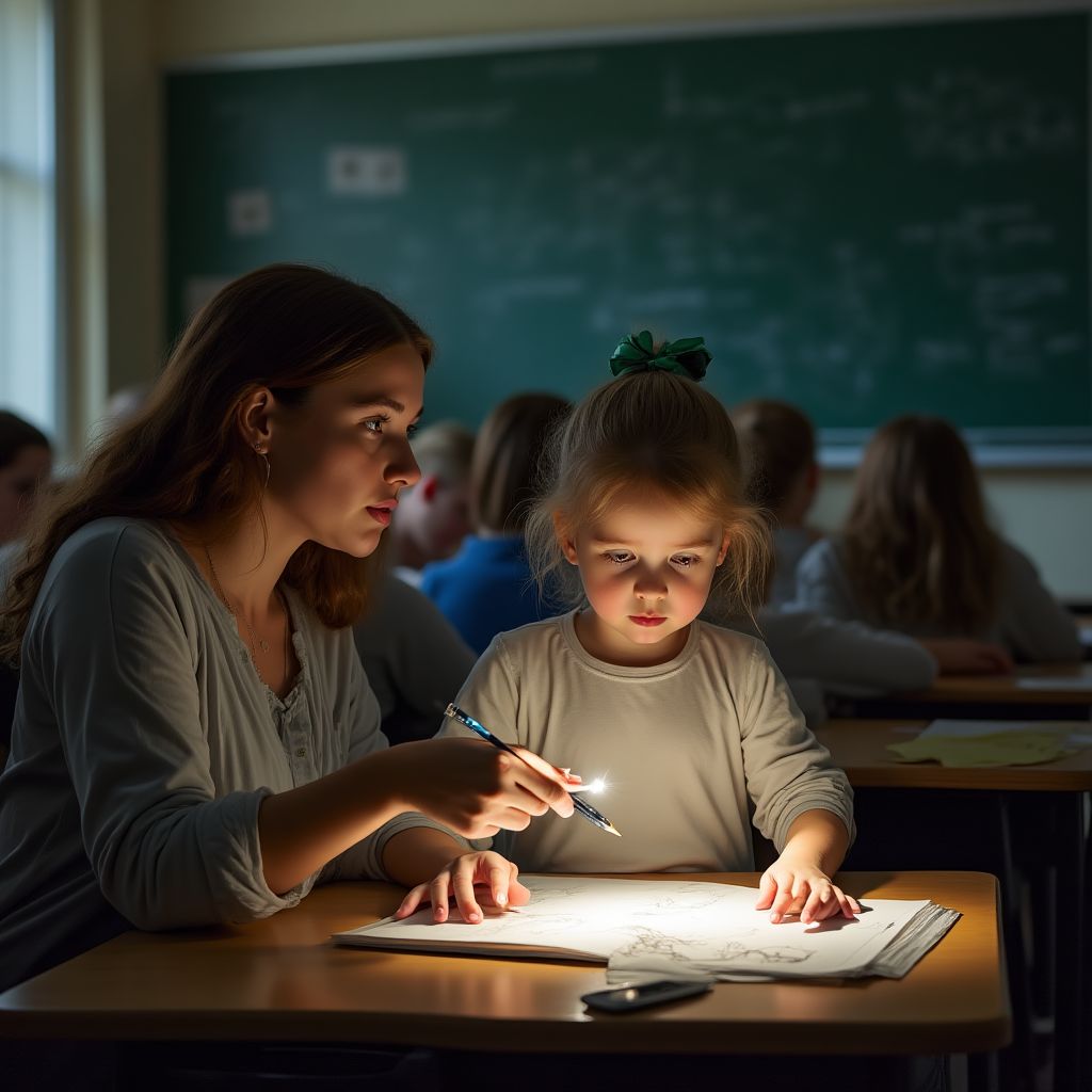 В тот самый момент, когда уборщица вошла в тускло освещённый кабинет, свет лампы бросал длинные тени на стены, а тишина давила, словно свинцовое одеяло. Мария Ивановна, чуть перешагивая, осторожно положила рисунок на стол. Учительница, удивленно севшая за парту, увидела изображение — это была простая карандашная зарисовка, но с глубоким символизмом: девочка изобразила себя окружённой серыми фигурами сверстников, которые словно затягивали её в бездну, а внизу рвался круг радости и света.