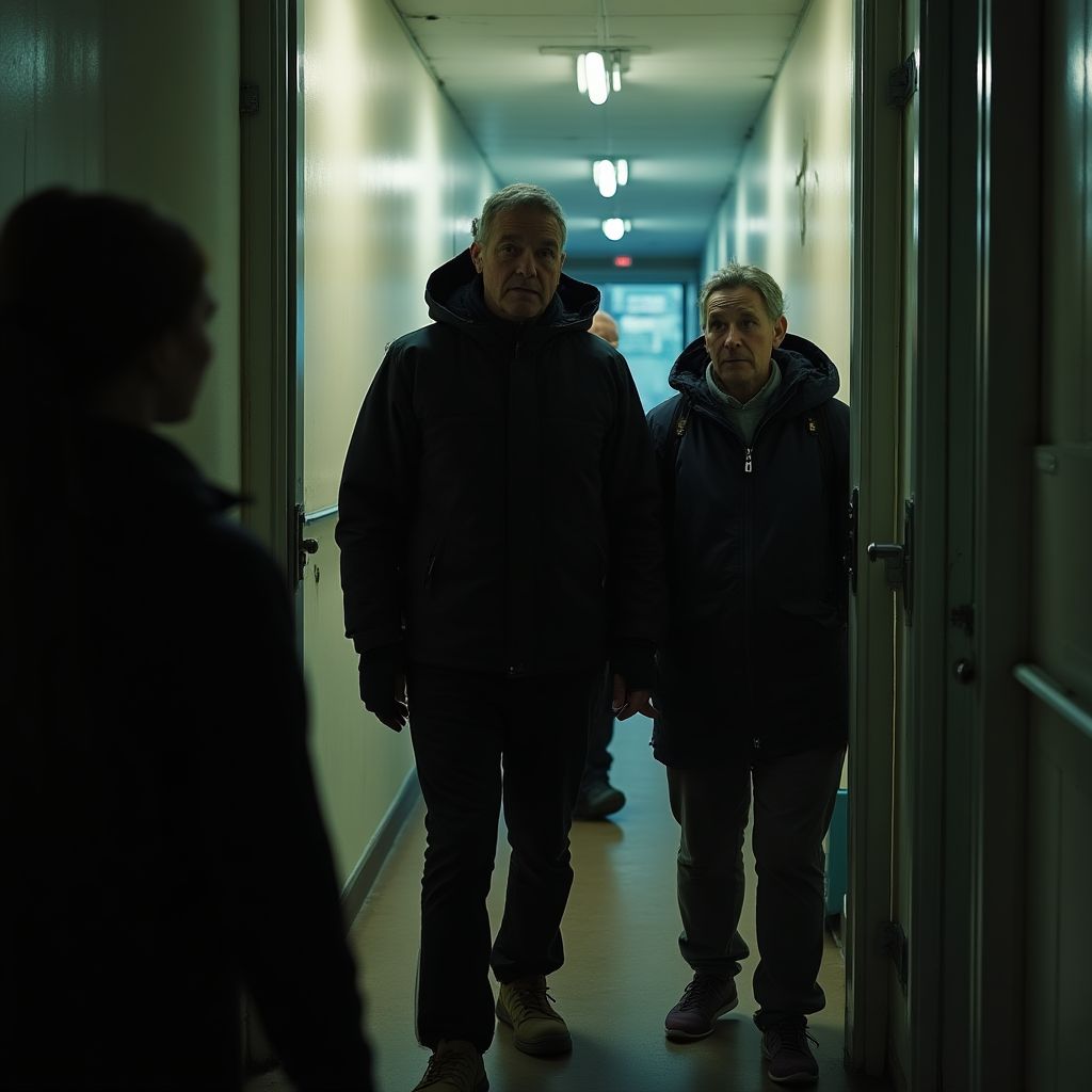 Вдруг по коридору раздался отчётливый стук в дверь, от которого у всех в желудке сжалось: «Кто там?» — тихо спросила Лиза, голос дрожал. «Откройте, я — Иван», — ответил хриплый мужской голос снаружи, будто из-под земли. «Это же он?» — прошептала одна из женщин в углу, и в воздухе повисло напряжение, словно перед началом грозы.