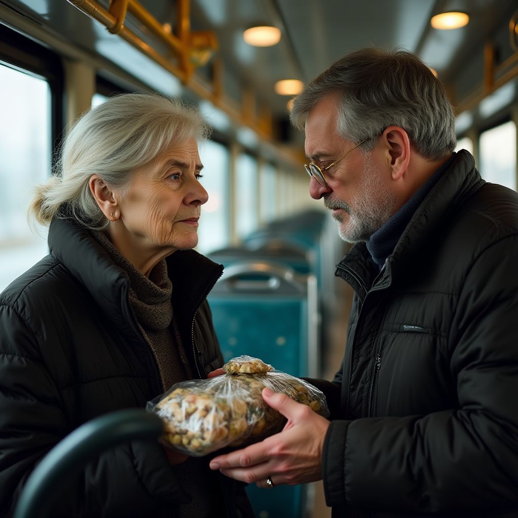 Пассажиры начали перешёптываться, перехватывая взгляды и растущую тревогу. Один из мужчин пробормотал: «Всё это звучит как странная сказка», а женщина в платке резко сказала: «Нельзя доверять незнакомкам в такой час». Мужчина чувствовал, как напряжение растёт, но удерживал руку на свёртке, решив узнать всю правду.