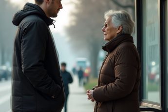 Поздним осенним вечером на городской остановке, укутанной в густой туман, мир казался замершим.