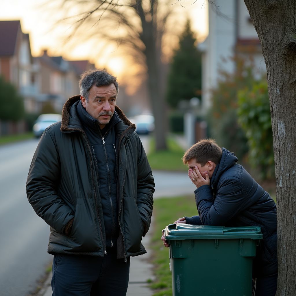 Иван стоял, прислонившись к холодной металлической стене соседнего магазина, его взгляд задерживался на фигуре у мусорного бака. Мужчина неизменно сгорблен, руки глубоко спрятаны в тёмных карманах, а через плечо свисала потрёпанная куртка, выцветшая и местами рваная. Тихий звук рыданий неумолимо рвался из этих дрожащих плеч. Ивану, спокойному офисному работнику с неделичной усталостью и аккуратной одеждой, казалось нелепым такое соседство — он, человек с зарубежным дипломом и чётким графиком, и он — этот бездомный, объятый горем.
