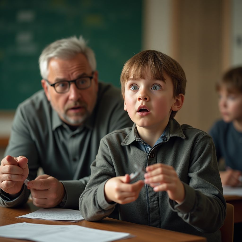 «Что это у тебя в руках?» — спросил учитель строгим голосом, подходя ближе. Максим почувствовал, как учащаются взгляды одноклассников, а в памяти забились страшные сцены прежних неудач и осуждений. «Это просто…» — попытался объяснить он, но голос дрогнул, и слова застряли в горле. «Ты не должен приносить это сюда! Убери, или я попрошу тебя выйти!» — звучало решительно, без тени сомнения. Рабочий день учителя, казалось, заполнялся враждебностью, а весь класс погрузился в напряжённое ожидание.