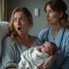 Комната роддома будто замерла во времени. Врач, стоявший перед Мариной, почувствовал, как в груди у него застыло дыхание. Его глаза расширились от неожиданности и внутреннего конфликта. Медсёстры, затаив дыхание, наблюдали за напряжённой сценой, каждый из них мог ощутить хрупкость момента.