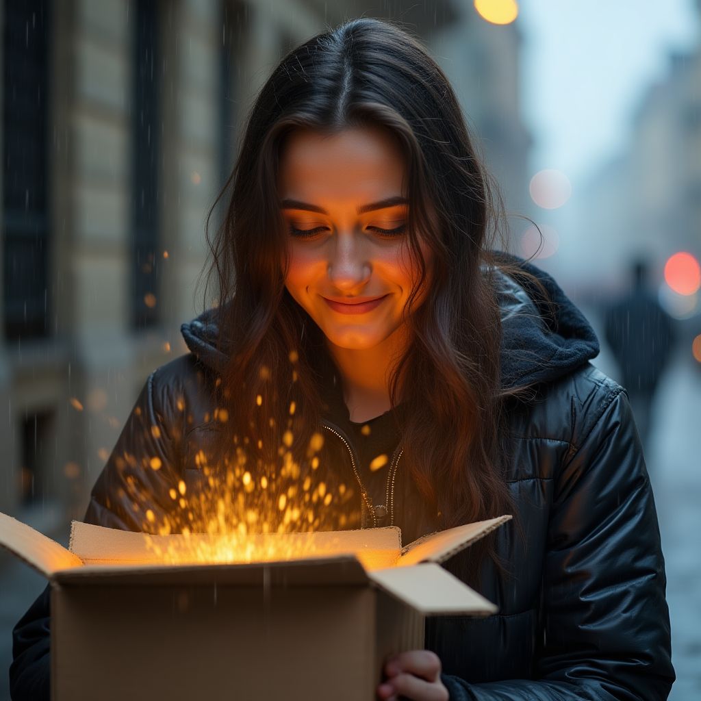 Шёпоты стали громче, взгляды с подозрением следили за её движениями, а сердце громче ударяло в груди, словно стремилось вырваться из тела. Она глубоко вдохнула — запах бумаги и влаги смешался с напряжением момента. «Что же мне делать?» — думала она, глядя на посылку, как на границу между прошлым и будущим. Молча, решительно, она прижала посылку к груди и вскрыла последний конверт, ощущая, как дрожь пробегает по пальцам и спине. В этот момент весь дождь стал шепотом, а мир замер в ожидании.