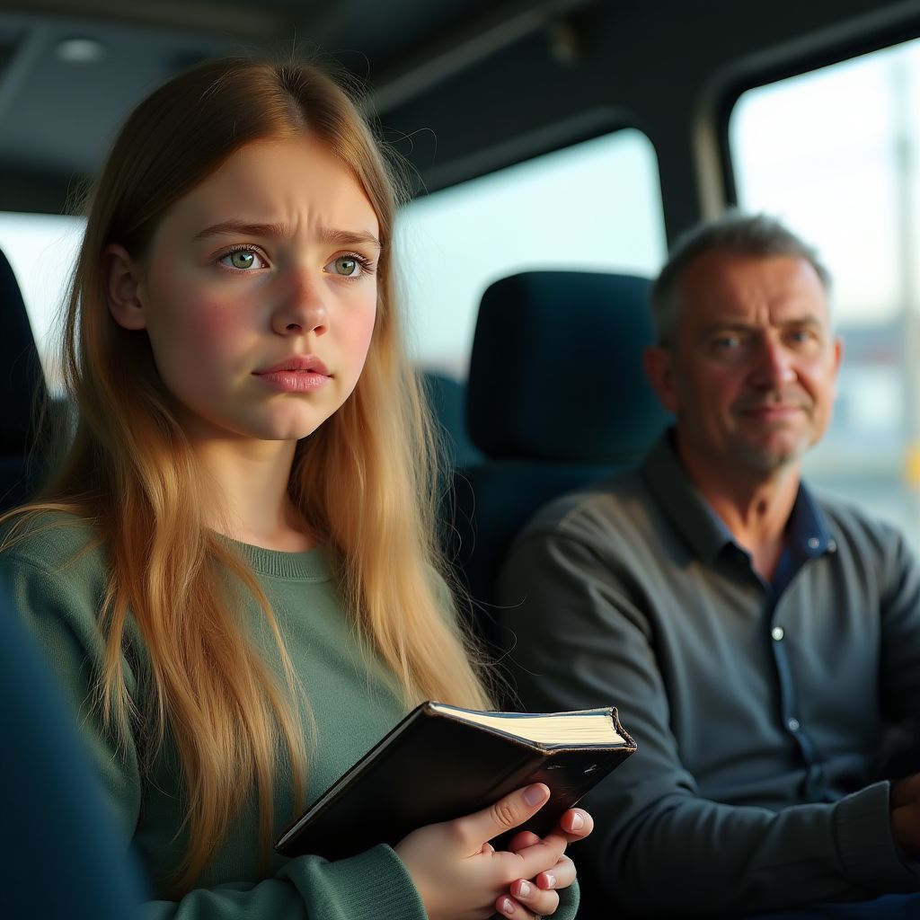 Со стороны некоторые пассажиры автобуса шептались, обмениваясь взглядами: «Кто эта девочка, что оставила дневник?», «Может, там записи важные, запрещённые?» — раздались голоса, переполненные любопытством и недоверием. Одна женщина, наклонясь к своей подруге, прошептала: «Это же бедная девочка, живущая на окраине… зачем ей звонить?». Её лицо выражало смесь сострадания и лёгкого насмешливого неудовольствия.