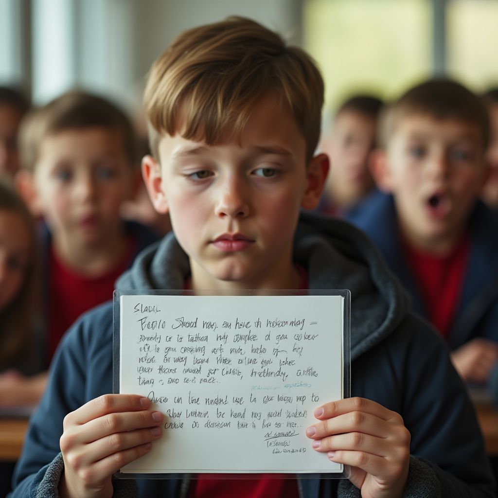 В эти мгновения Петя осознал, что его молчание — не пустота, а бой невидимому несправедливому миру. «Я должен рассказать правду», — промелькнуло в его голове. Он медленно открыл сумку и вытащил пыльный конверт с заметными следами от слёз. «Если никто не поверит мне лично, то пусть прочитают это», — решил он с железным спокойствием, хотя внутри всё билось тревогой и надеждой.