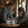 Его звали Андрей — высокий, с чуть посеревшими от городской пыли волосами и глазами серо-голубого цвета, блеск которых нёс в себе усталость и пережитые разочарования. Одет он был скромно — поношенная, но чистая куртка, плотные джинсы и старая кожаная обувь, которая когда-то служила дольше. Его лицо обрамляла короткая небритость, а руки, прячущиеся в карманах, дрожали от холода. Андрей пришёл сюда не случайно — он искал ответы и, возможно, спасение для своей семьи. Его внутренний мир кипел — мысли о дочери, которая ждала его дома, и о работе, которую он мог потерять, окутывали сердце тяжёлой тучей.