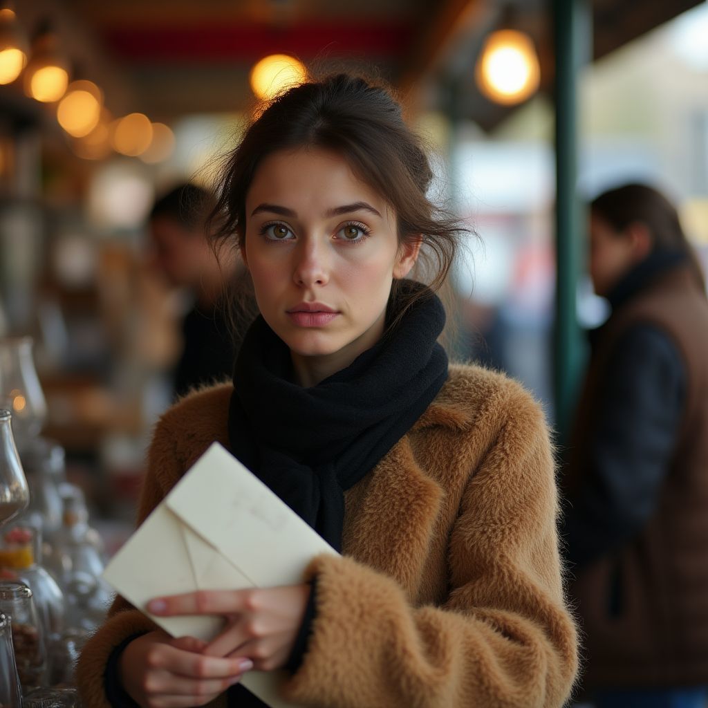 В воздухе повисло натяжение, словно перед грозой, каждый звук звучал слишком громко. Все непроизвольно замерли, наблюдая за её движениями. Она медленно убрала руку под прилавок и что-то поцеловала, спрятив в тени конверт, о котором никто не должен был знать. Её глаза встретились с глазами старика у соседнего прилавка — в них мелькнул глубокий страх и понимание. Сердце забилось в бешеном ритме, мороз прошёл по спине.