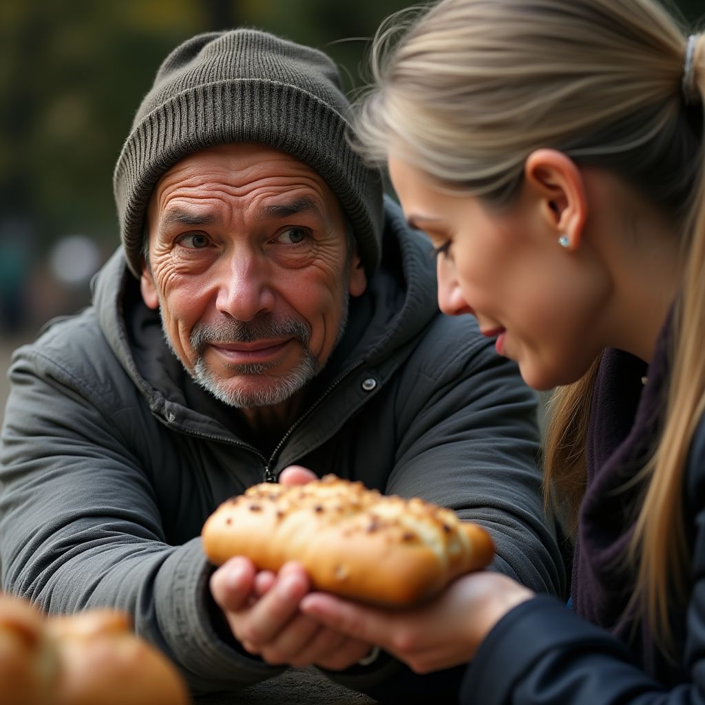 Стоя на том самом рынке, где всё началось, женщина задумчиво смотрела на уходящее солнце, отражающееся в лужах после недавнего дождя. «В этом мире каждый может стать тем, кто подарит надежду», — подумала она. Сердце наполнялось гордостью и желанием двигаться дальше. Вспомнив тот момент — когда бездомный мужчина взял последний кусок хлеба и заплакал — сейчас это казалось началом новой жизни для многих. Ведь человечность — не просто слово, а поступок, изменяющий судьбы.