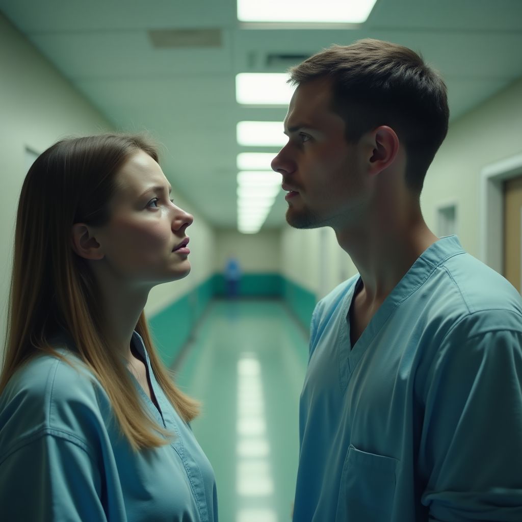 Молодой парень, Алексей, ставший случайным свидетелем этой сцены, замер, выискивая причину её боли. Его взгляд скользнул по тусклому освещению, по белым стенам, пропитанным смесью тревоги и надежды. Он чувствовал, как сердце бешено колотится, а горло сжимается от чужой печали — что она скрывала за этим плачем?