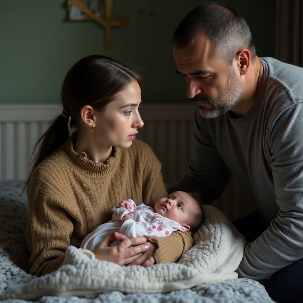 Его взгляд переходил от обеспокоенных лиц к теням углов и потёртым стенам, где казалось, что за каждым углом прячется секрет. «Что делать дальше?» — думал Алексей, чувствуя ответственность за судьбу малышки. Его внутренняя борьба была наполовину страхом, наполовину решимостью помочь, какой бы сложной ни была правда. «Отступать нельзя, ведь это ребёнок – её жизнь на кону».