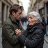 Она — невысокая женщина в потёртом пальто, с седыми прядями у лица и глазами, полными потаённых надежд — держала в руках букет полевых цветов. Его слабая фигура казалась всё более запущенной — долгое расставание с жизнью отбросило прочь былую силу и уверенность. Его руки, в которых дрожала тёплая перчатка, не отпускали её даже на мгновение. Вокруг раздавались приглушённые звуки шагов прохожих и редкие взгляды соседей, переходящих улицу, словно боясь нарушить священную тишину.