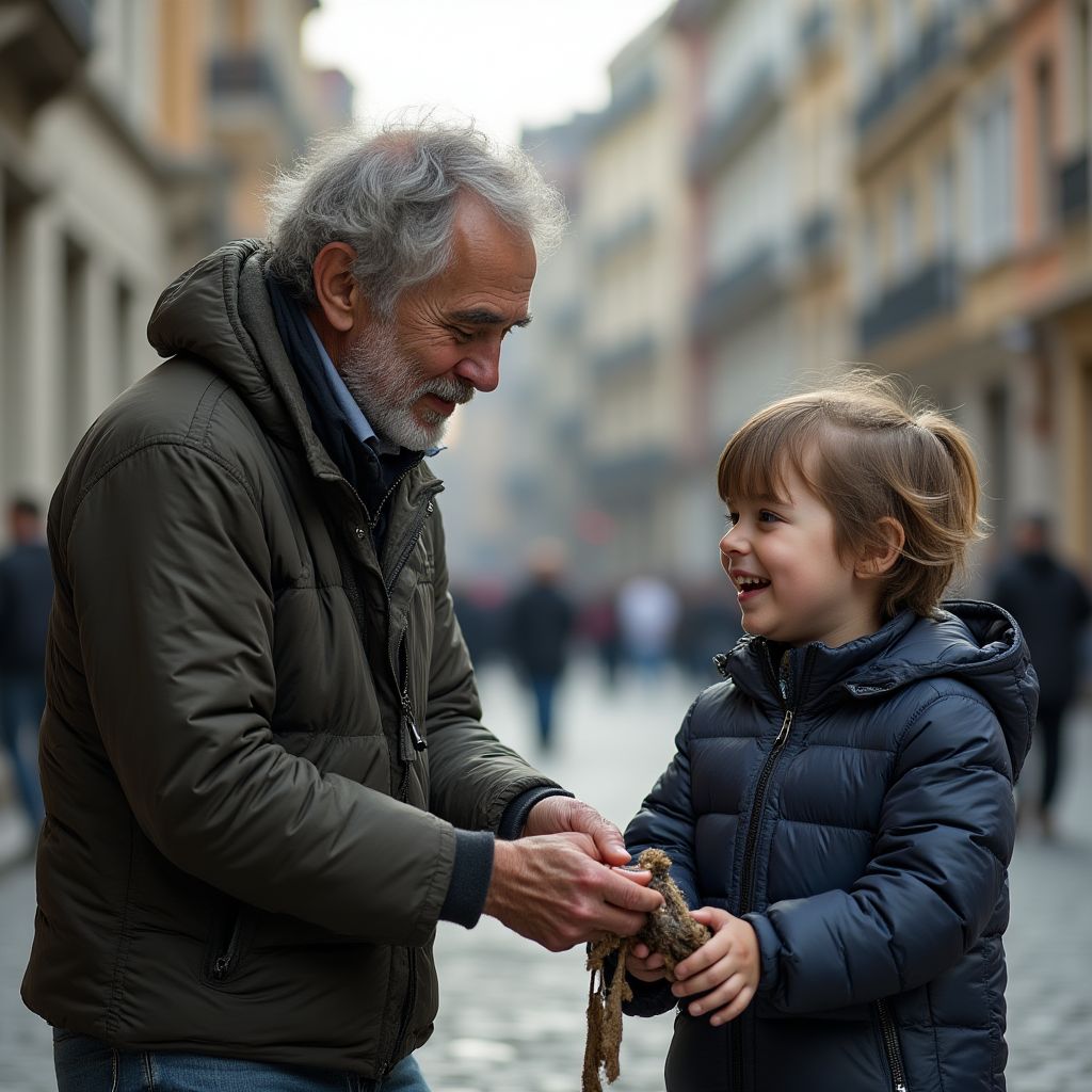 Мгновение, когда мальчик взял куклу в свои руки, словно остановило потоки времени на оживленном рынке. В каждом дыхании стояла тишина, а прохожие, казалось, замерли в ожидании развязки. Глаза бездомного мужчины блестели не только от старости, но и надежды — как будто он передавал с этим подарком частичку своей души. Сердце мальчика билось учащённо, руки дрожали, пытаясь ощутить тепло старого предмета. «Это больше, чем просто игрушка», — прошептал он, и взгляд мужчины в ответ был наполнен глубоким пониманием.