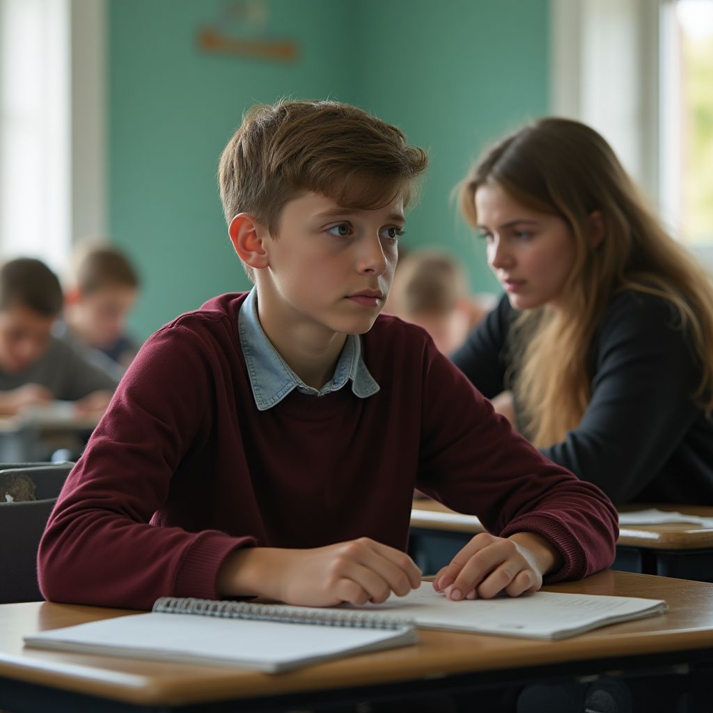 Сердце Максима забилось ещё сильнее, когда он увидел, как лицо Сергея побледнело, а руки начали дрожать. «Что с тобой?» — тихо спросил учитель, делая шаг назад, чтобы не давить. В классе повисла робкая тишина, каждый затаил дыхание, ощущая приближение разгадки. Внезапно Сергей поднял глаза и бросил быстрый взгляд на дверь, словно ожидая кого-то. «Я… я должен вам кое-что рассказать», — с трудом произнёс он, голос дрожал от волнения. Максим кивнул, подбадривая.