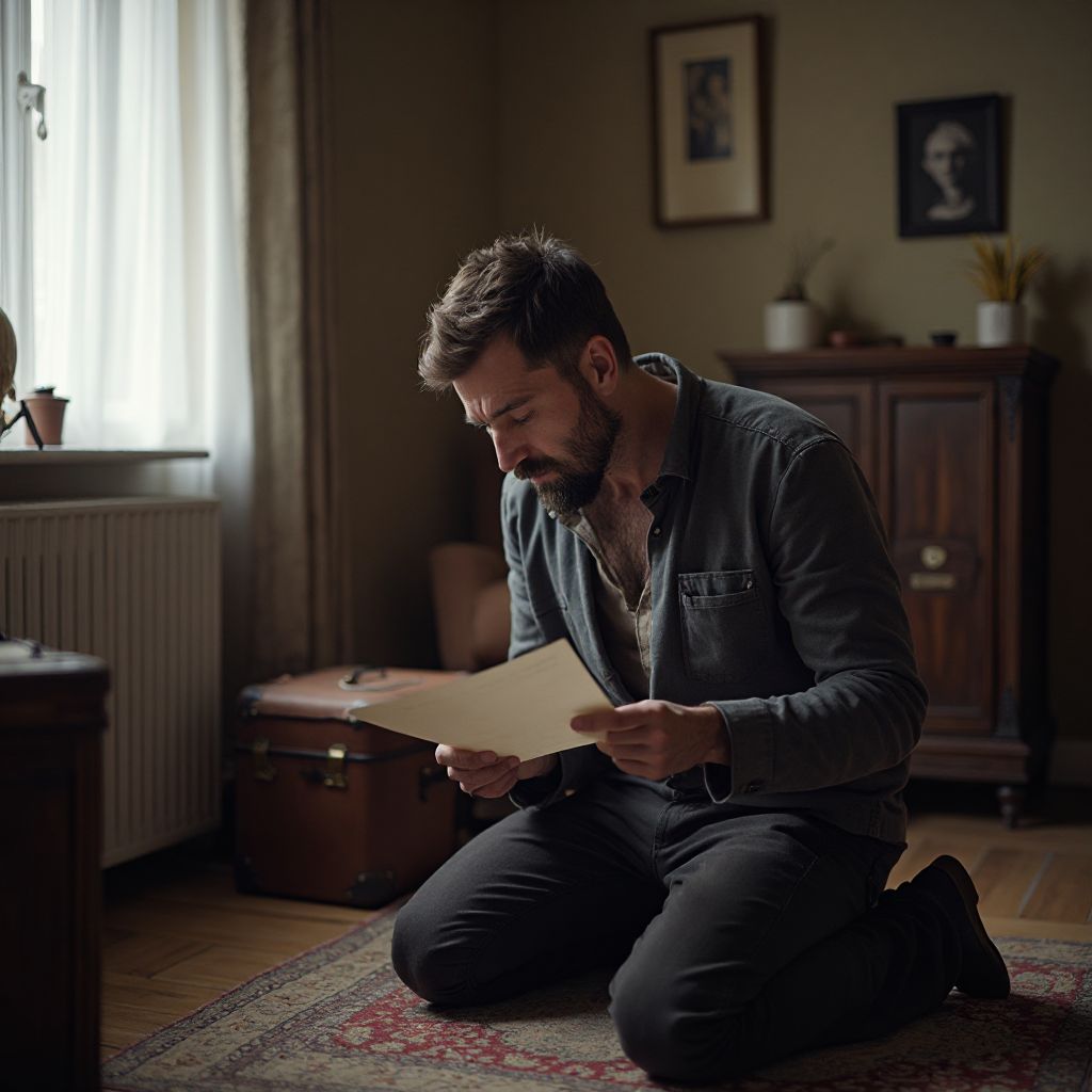 Раздался жаркий голос старика-торговца неподалёку: «Эй, парень! Что ты там копаешься? Пора уже уходить, рынок закрывается!» Никита поднял глаза. «Я просто ищу… Мне сказали, здесь можно найти ответы», — тихо произнёс он. «Ответы? Тут только мусор для таких, как ты», — грубо усмехнулся другой рабочий, поднимая палец в сторону Никиты. «Нашёл, значит?» — подшутил третий, поглядывая на чемодан. Никита на секунду замер, затем медленно разжал кулак и обхватил ремень. Он открыл замок, но сразу почувствовал, как холод пробежал по спине. «Чёрт, это письмо… только несколько слов прочёл — потом рухнул на колени», — прошептал он себе, а руки дрожали так, словно осенний холод пробирал даже через одежду.