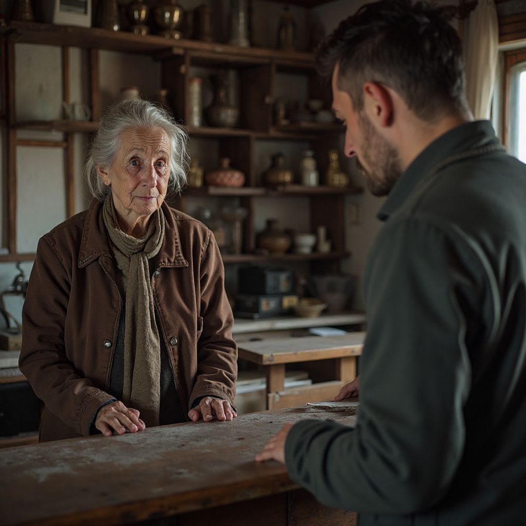 Старушка медленно повернулась к нему, её глаза ближе, чем казалось, были полны тайн и боли. «Я потеряла своего внука,» — прошептала она, — «и никто не верит, что он жив. Только ты можешь помочь, только ты…»