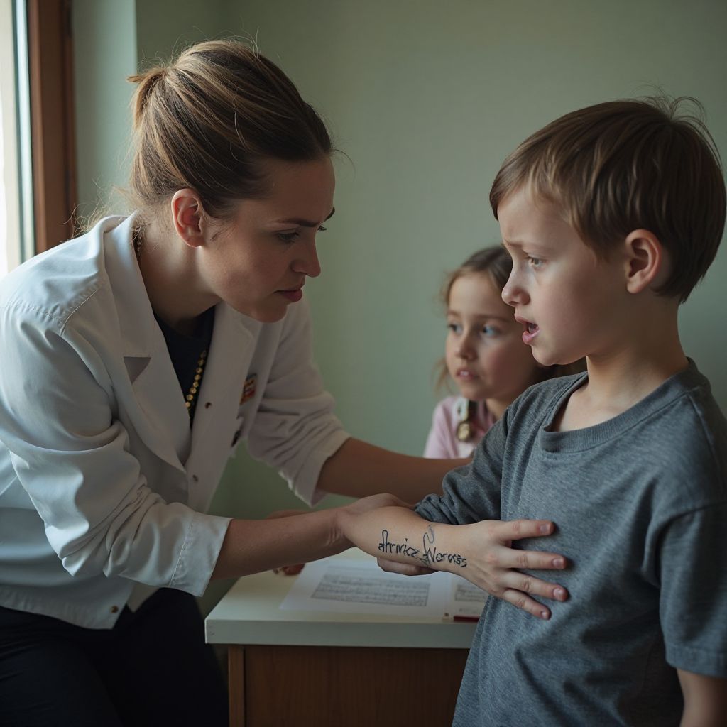 Мгновения растягивались, когда Ирина удерживала руку Ванечки, изучая таинственные метки на коже. В глазах мальчика мерцал страх и отчаяние, который можно было сравнить с глубоким провалом в душе. Сердце женщины колотилось беспокойно, дыхание сбивалось, а вокруг стояла почти священная тишина, прерываемая лишь лёгким шелестом листьев за окном и тихими вздохами учащихся.