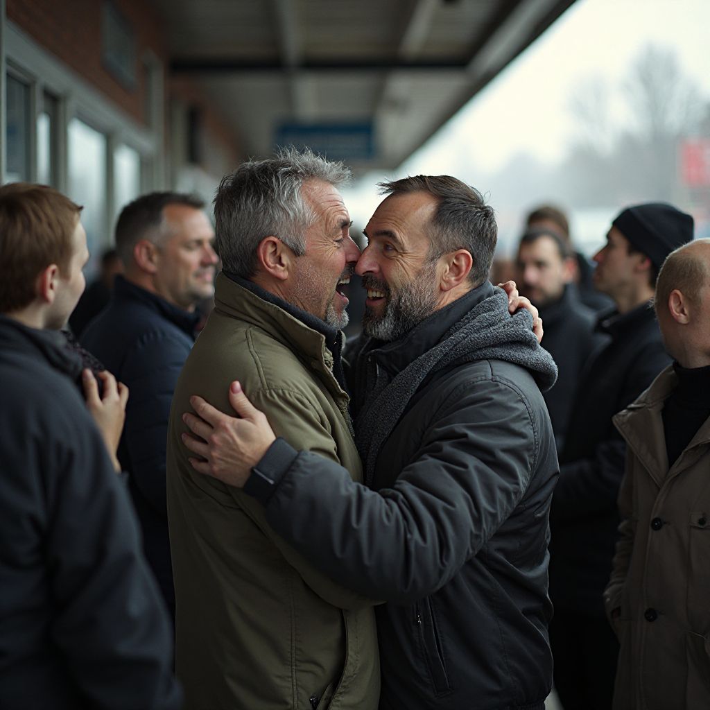 «Почему ты мне не веришь?» — тихо произнёс тот, неожиданно приблизившись и обняв Виктора. В тот самый момент все, кто стоял в очереди, замерли, словно их время остановилось. В воздухе ощутилась напряжённая тишина, смешанная с шёпотом удивления и тревоги. «Что происходит?» — слышалась растерянность из кучи голосов. Виктор почувствовал, как холод и жара одновременно пробежали по его коже, дыхание остановилось на миг. Никто не мог понять, зачем этот незнакомец сделал такой шаг, и почему Виктор не отстранился. Мгновения растянулись, а внутри каждого пытались проникнуть догадки и страхи.