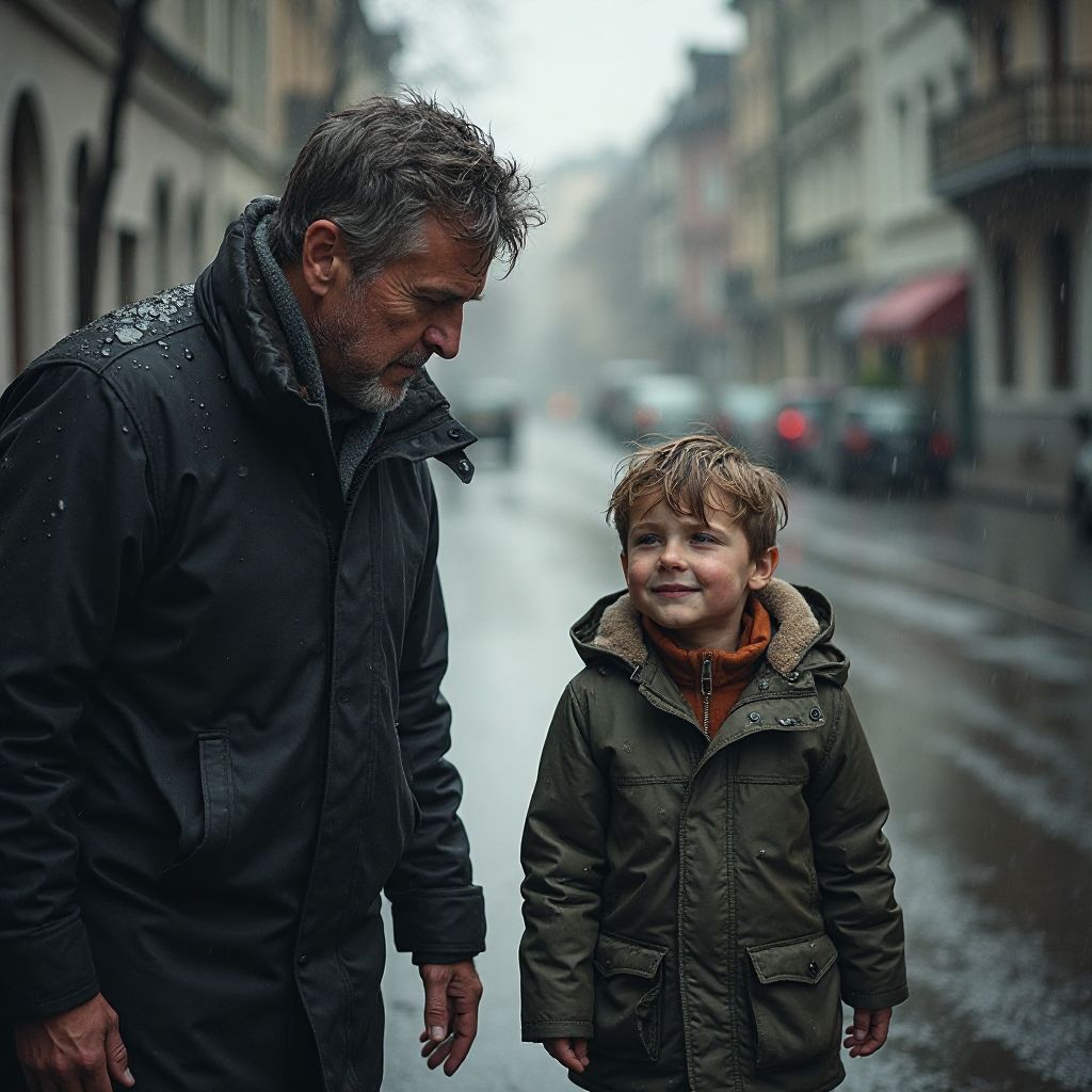 Внезапно, сквозь шум дождя, Игорь заметил маленького мальчика, который шел один по мокрому асфальту, неся на себе промокший рюкзак. Мальчик был одет в поношенную курточку с дырками на локтях и потёртые кроссовки. Тяжёлые капли падали на его головы, стекающие по светлым прядям волос. Игорь подошёл ближе, сердцем чувствуя холод и беспокойство: «Что делает этот ребёнок один в таком дожде? Где его родители?». Подойдя ближе, он услышал еле различимые слова, от которых лед пошёл по венам — «…никто меня не ждёт… мама ушла и не вернётся… папа в тюрьме… я больше не нужен…». Его сердце затряслось, дыхание стало прерывистым.