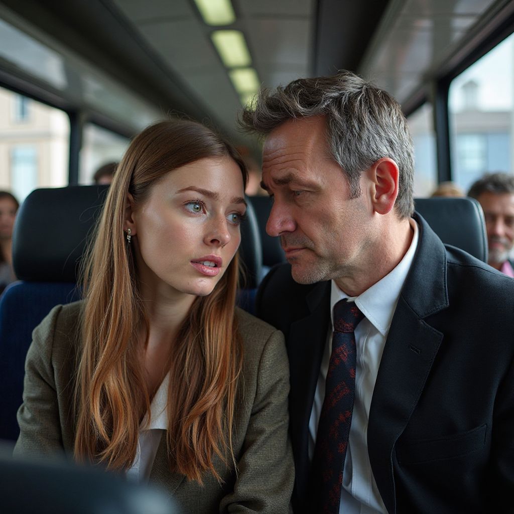 Внезапно в салон вошёл мужчина — высокий, с серыми глазами и аккуратными, хоть и простыми, вещами. Он подошёл и сел напротив, бросив на неё быстрый взгляд. «Прошу прощения, — начал он тихо, — я должен сказать вам кое-что, что вы давно боитесь услышать», — его голос был наполнен странной смесью тревоги и решимости. Женщина вздрогнула и слегка покраснела, почувствовав, как поток взглядов других пассажиров сужается на ней и незнакомце. Шёпоты за её спиной становились всё громче: «Кто он?», «Что он сказал?», «Посмотри на неё — она что-то скрывает»