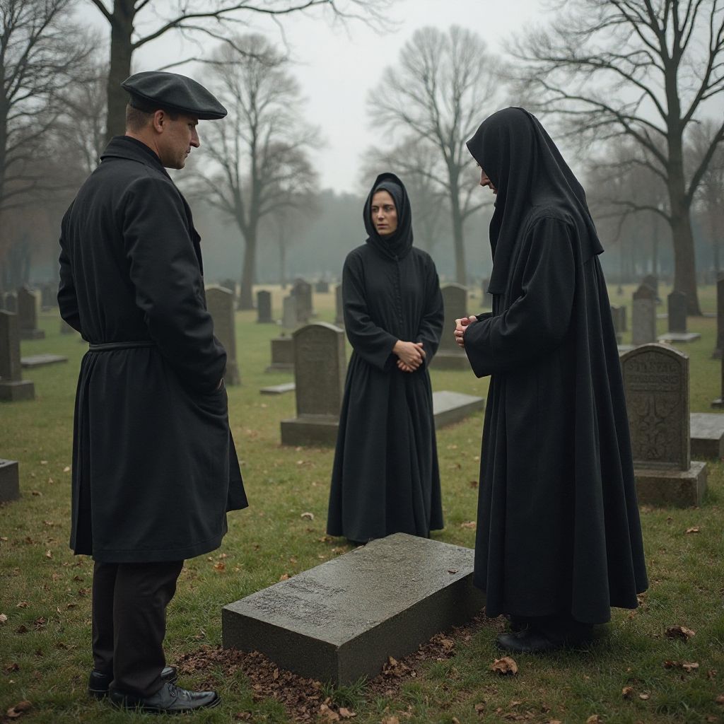 В этот момент у могилы появились две тени — неожиданные фигуры, которых никто не ожидал увидеть в такой день. Все присутствующие замерли, в воздухе застыла тишина, тяжелая и густая, словно время остановилось. Сердца учащённо забились, а зрители с ужасом и надеждой ждали, что же случится дальше — невозможно забыть!