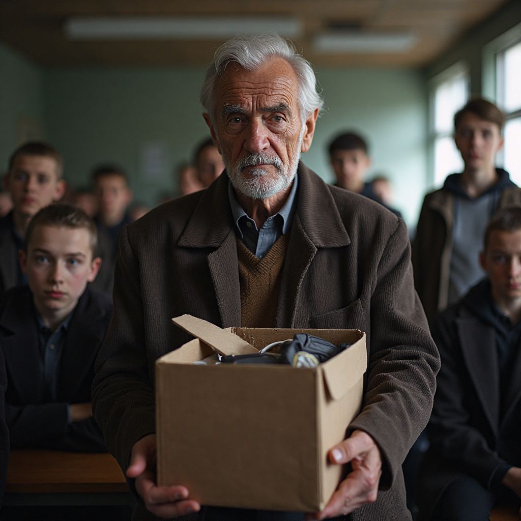 Старик остановился у входа в класс, где уже собирались дети и учителя. Его лицо оставалось неподвижным, но внутренне чувствовалась напряжённая борьба — сердце билося часто, дыхание учащалось, а пальцы сжимали ручку сумки до белизны. Мысли мелькали в голове: «Что они обо мне подумают? Смогут ли понять моё послание? Или отвергнут, как и всегда?» Несмотря на груз лет и бедности, он знал, что пришло время. Время сказать правду, которая прорежет тишину и заставит всех слушать.